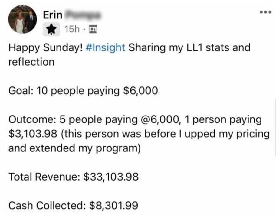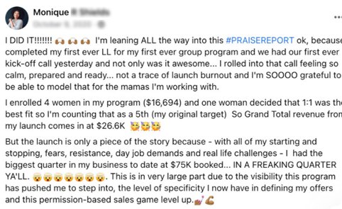 The Lean Launch Method inside LEVERAGE™ is how clients have sold out programs from their couches, in their DMs, or simple live video content, without viral reels or thousand dollar ad budgets.